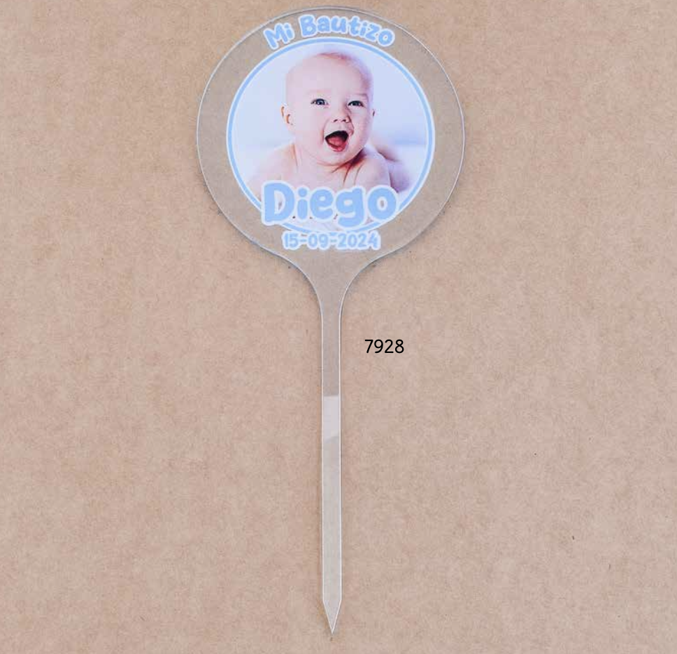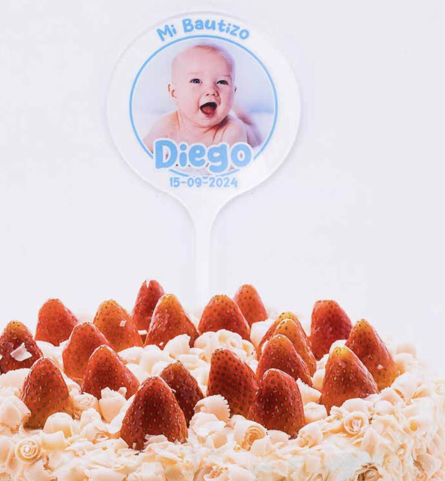 Cake topper metacrilato bautizo niño personalizado con foto y nombres